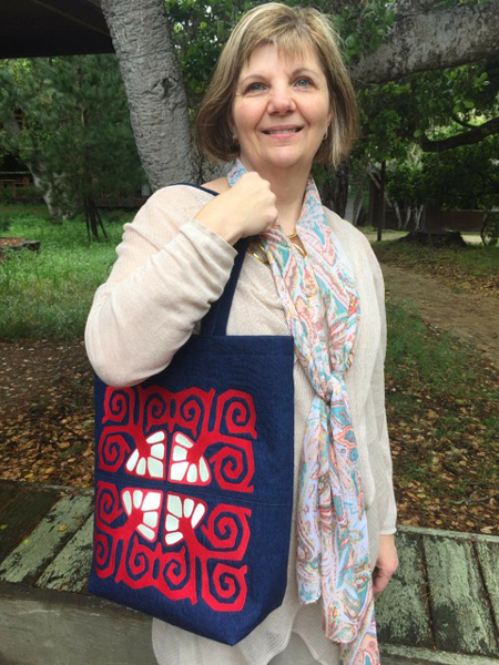 Barbara had lots of fun with her 790 BERNINA sewing machine while at the Asilomar retreat this year. The designs on the tote bag are beautifully stitched out and more free form stitching has been added for texture. |