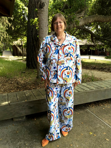 Diana made amazing Wonder Woman flannel pj's! She had never piped edges before so this was a good learning session. The pattern was McCall's M6659. |