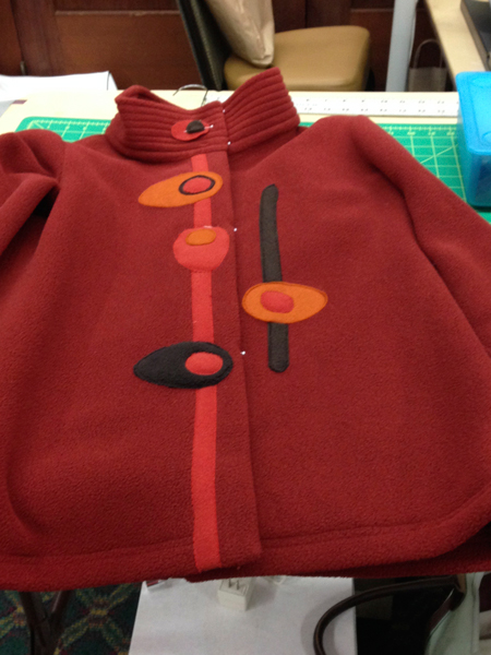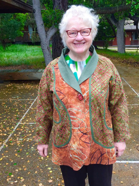 Sharon is happy she finshed her jacket using Vogue 1277 designed by Koos van den Akker. Jane removed some of the fullness in the pattern and adjusted the neck. |