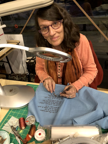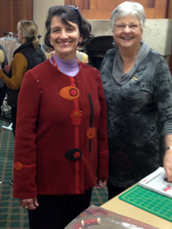 Note the front button closure on the polartec fleece jacket Vicki is wearing. She made it on a previous sewing retreat.