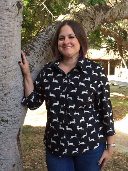 Carrie went home wearing her rabbit shirt...fabric she'd bought from Hartz Fabrics on the way down. She used Katherine Tilton's Butterick pattern B6026. |