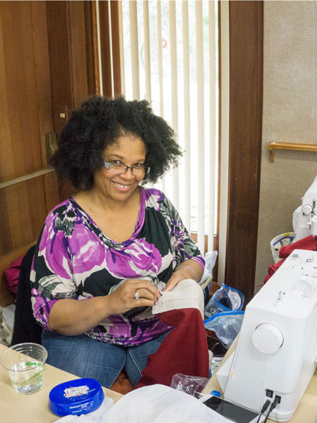 Sharon is working on a Katherine Tilton pattern. |