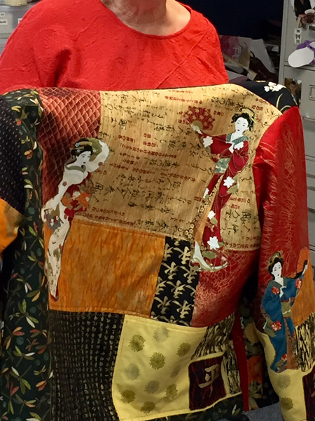 Students could make a garment, a piece of art, a wall hanging, or anything where fabric is applied to a surface. It could be sewn or fused or glued. Enjoy the photos below.