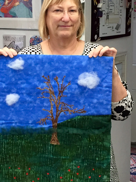 Jane challenged her students to produce a .......FABRIC COLLAGE........a work that is made by attaching pieces of different fabric to a surface.