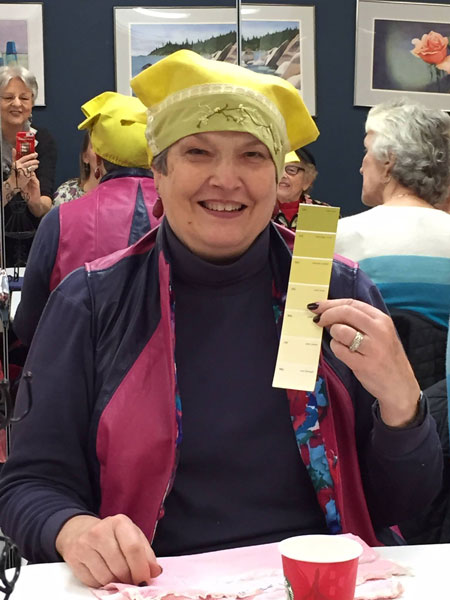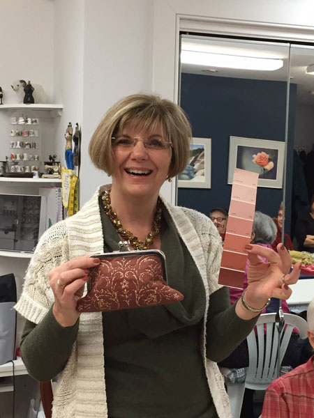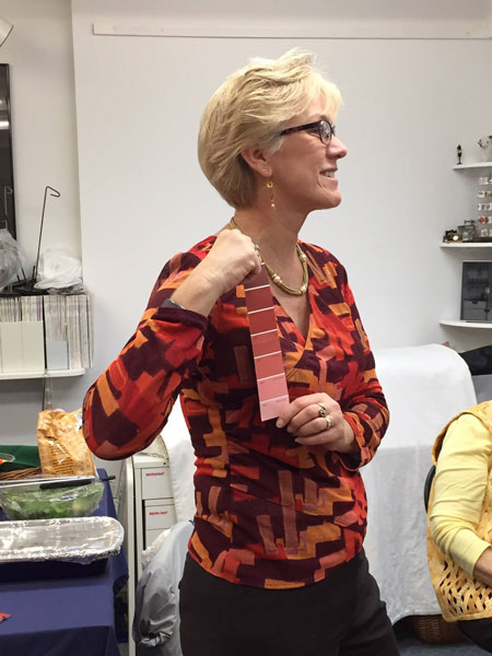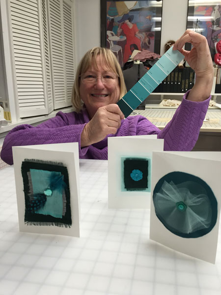 Everyone met in Jane's studio for a potluck and to share their creations. Many of the photos below show the color strip each person was using.