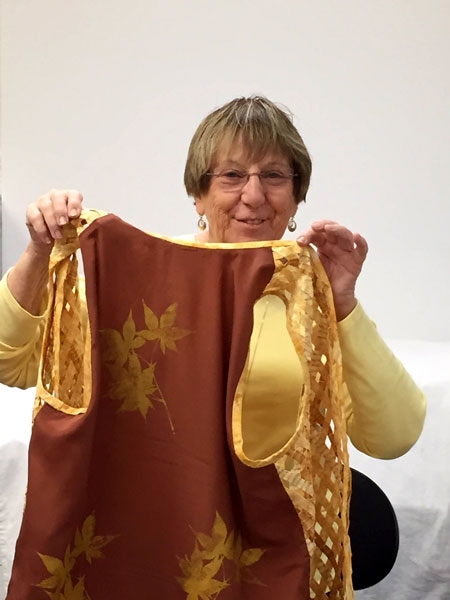 Betty finished a vest that she started many years ago! She lined the back and screened a design on it. |