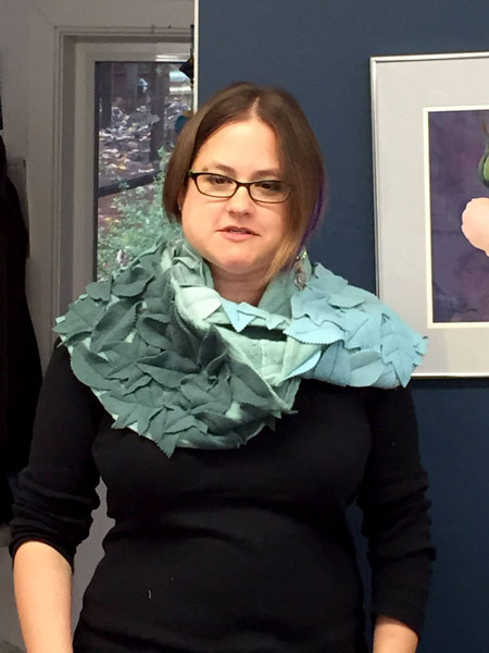 Carrie was adventurous and dyed used sweater knits to make this long scarf. |