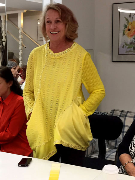 Diana had this yellow knit in her stash and used it for her project. She bought the trim at Britex. |