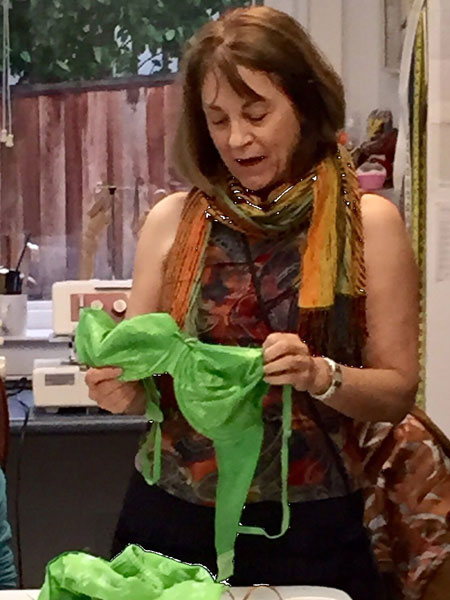 Lark dyed her fabrics the colors she needed to get the bright greens. She made a knit top and a bra...amazing! |