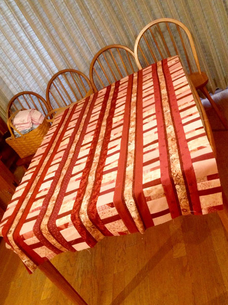 Barbara took fabrics from her stash to make this table runner and matching napkins. |