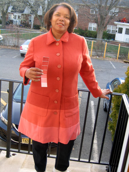 Sandra lives in New Jersey and did my challenge long distance. I sent her the paint strip and she created this amazing coat! |
