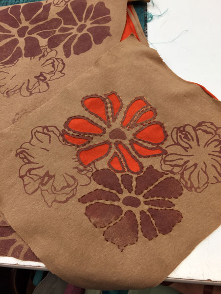 Vicki is making an Alabama Chanin style skirt which uses stencils and reverse applique. |