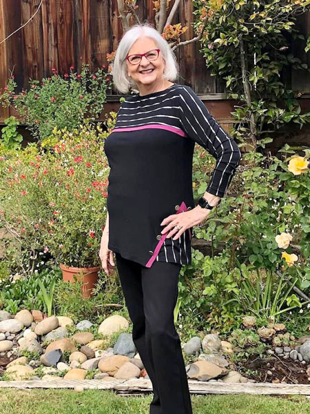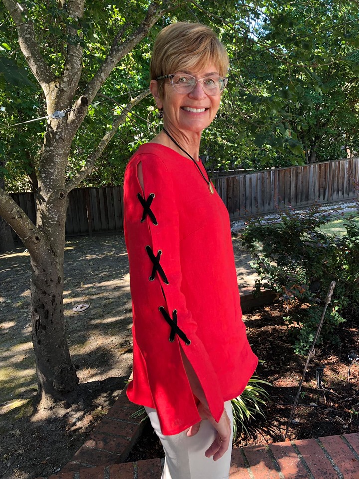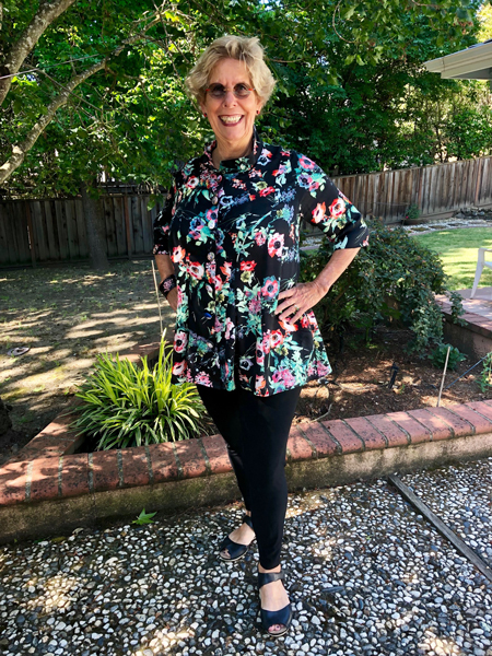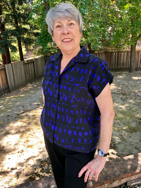 Barbara looks so good in this simple shirt which she calls Lisa’s shirt because Lisa has made it many times. The pattern is by Louise Cutting and Linda Lee.