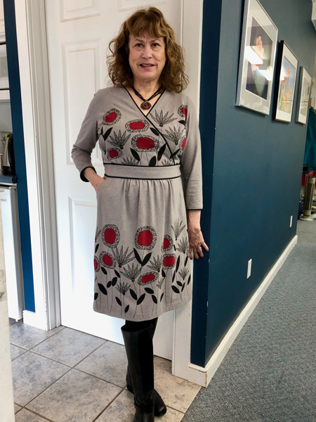 Carol finished another great knit dress. This fabric is Lillestoff from Germany and the pattern is one she created.
