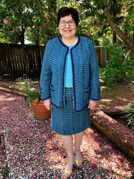 Fran just finished her French couture jacket and skirt. The fabric came from Britex, and the silk charmeuse lining is quilted to the jacket.