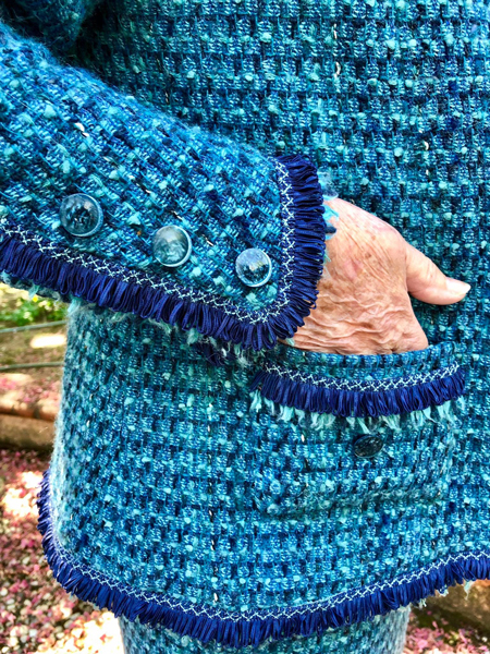 The silk charmeuse lining is quilted to the jacket in the French couture style. She will get good use from this jacket.