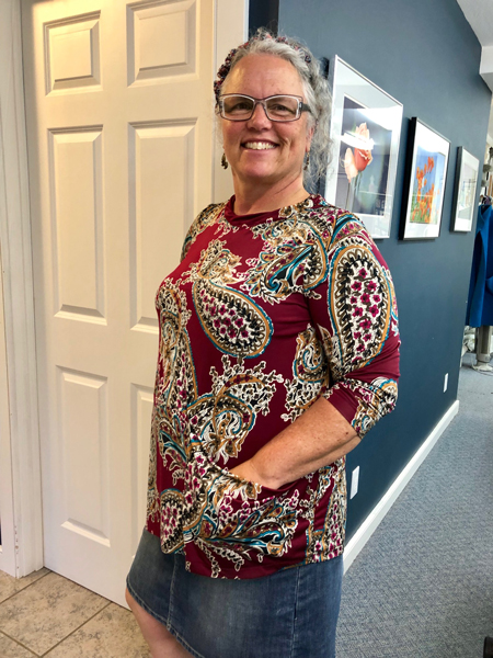 Joy finished the edges with binding on her new top.