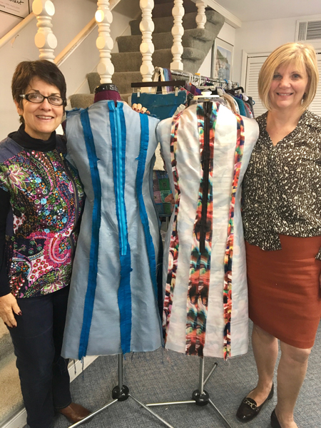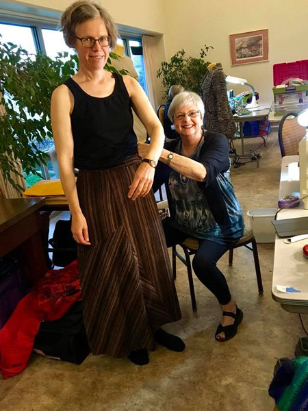 Santina and Barbara both worked on the same dress pattern at Auburn, and now are ready to put the linings in...Wait till they are finished you see them wearing them. |