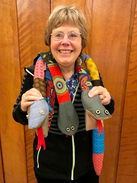 Robin used African fabrics for these "snakes", which can be used as door draft stoppers. |