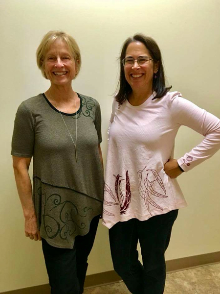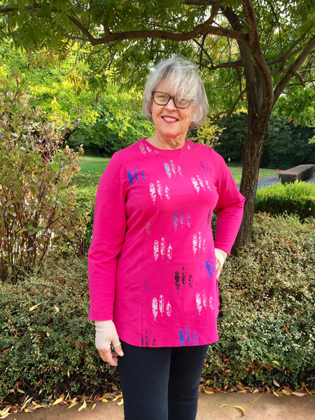 Sally and Marie both made StyleArc's Kim Swing Top, and decorated them with silk screening. Jane thinks this pattern is flattering on many ladies. |