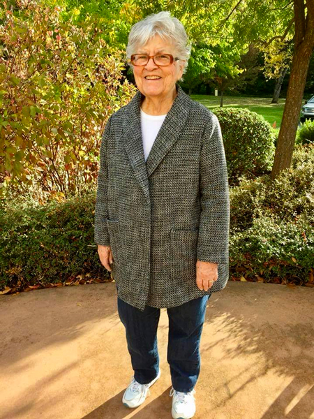 Slyvia made this lined tailored coat using Butterick B6251, She just needs to add the buttons. |
