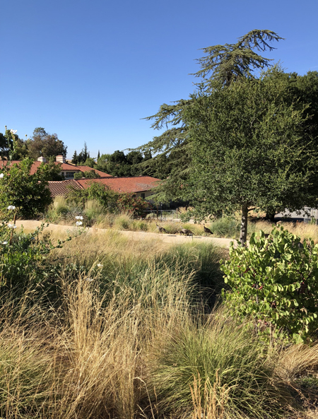 View from the patio outside of the sewing room. If you look closely you can see a family of turkeys on the path. |