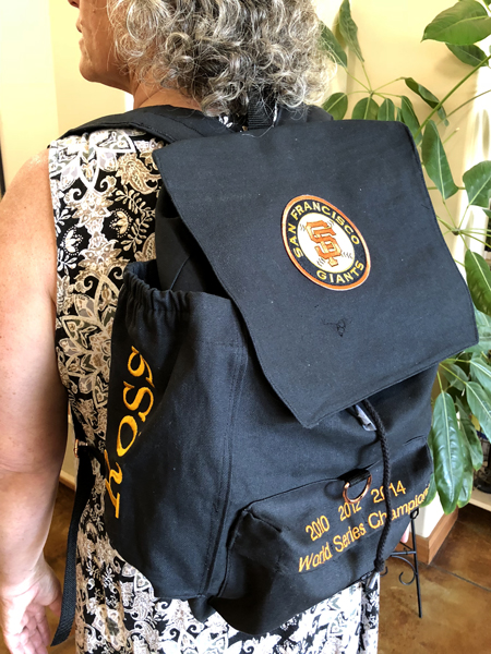 Thea's husband Ross will love this backpack featuring the San Francisco Giants. His name is displayed on the side. |