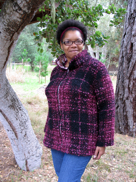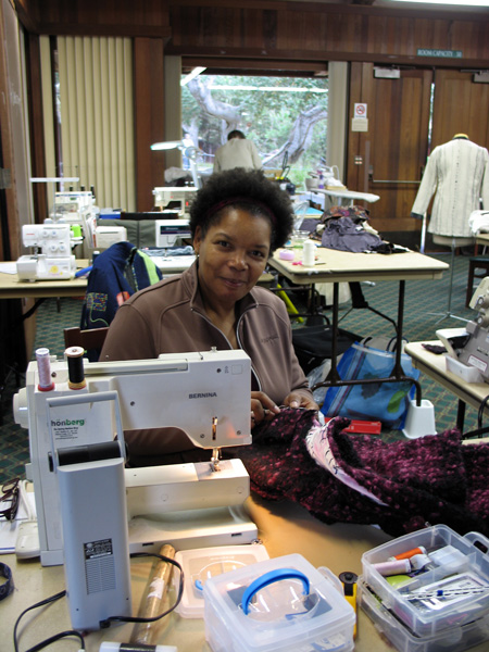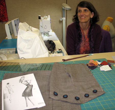 Another stylish design with this super reversible fabric from Paris. She is working now on designing patch pockets. |