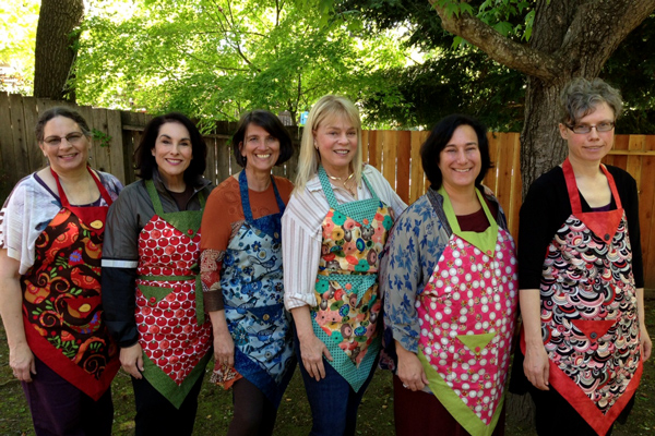 ![]() Dear Laura (far left) made us all beautiful aprons. We thought Christmas had arrived in April. |
