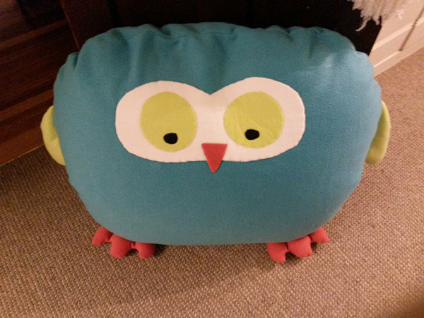 Robin made this cute furry creature as a bean bag chair for her grandchild. |