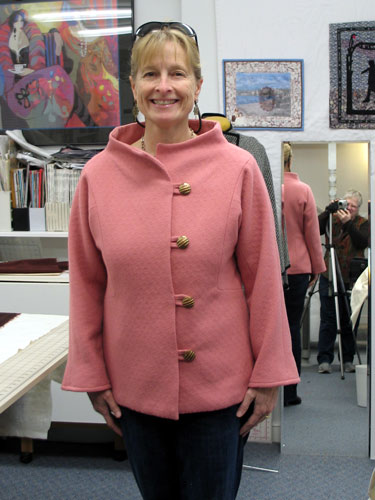 Pat is delighted with her new sewing creation. The color choice compliments her coloring!! |