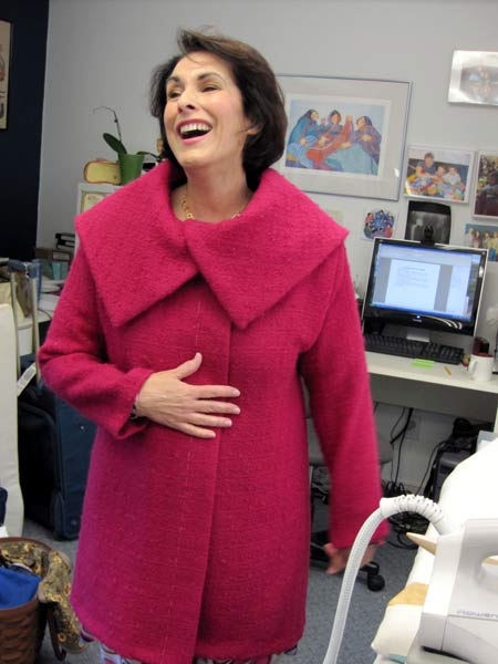 She found this silk charmeuse lining at Piedmont Fabrics, and it is perfect for her coat. |