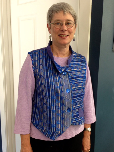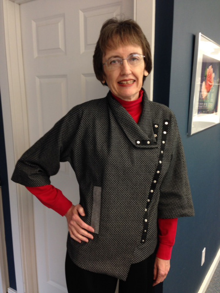 Susan finished her unlined jacket and it looks really good on her. The fabric came from Marcy Tilton and pattern was Vogue 8863 designed by Katherine Tilton . |