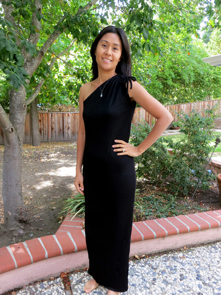 Margaret chose a Burda simple dress pattern and made this stunning maxi black knit dress. |