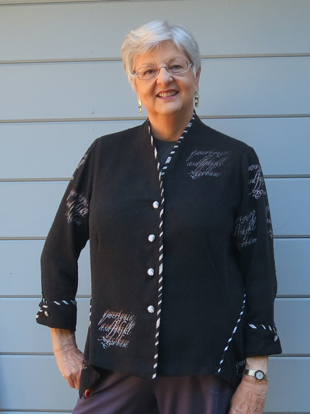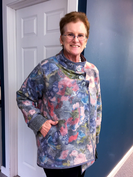 Pat looks great in her new top. She used Vogue 8856 for the pattern. |